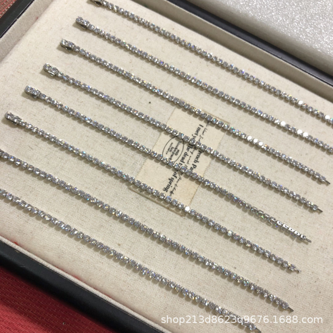 Zircon Bracelet Tennis Chain European and American Light Luxury Fashion High-End Titanium Steel Jewelry Stainless Steel Claw Chain Sugar Cube Row Diamond Stacking