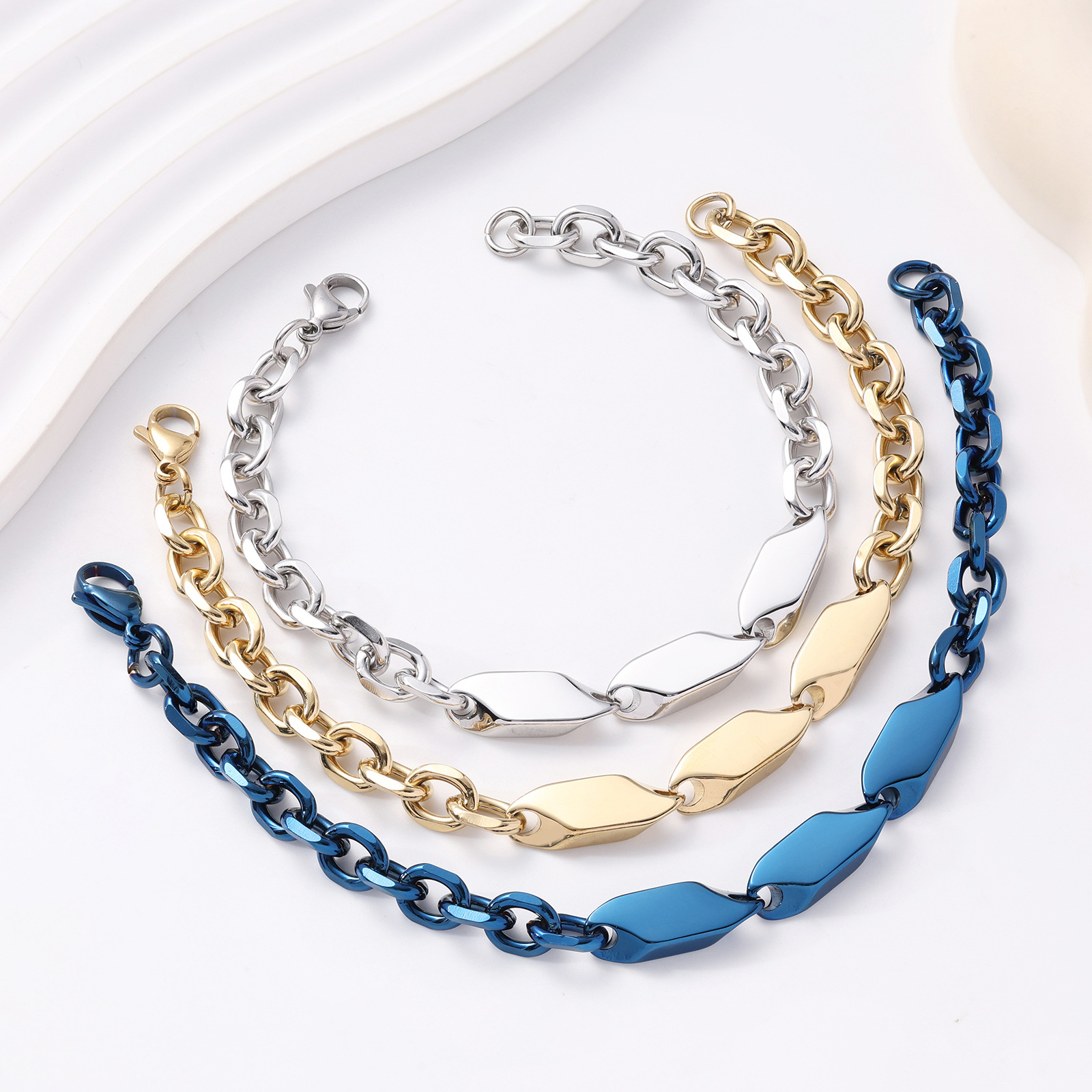 Cross-Border Popular Titanium Steel Personalized Bracelet for Men, Simple Stainless Steel Cuban Chain Jewelry with Lobster Clasp, Wholesale from Manufacturer