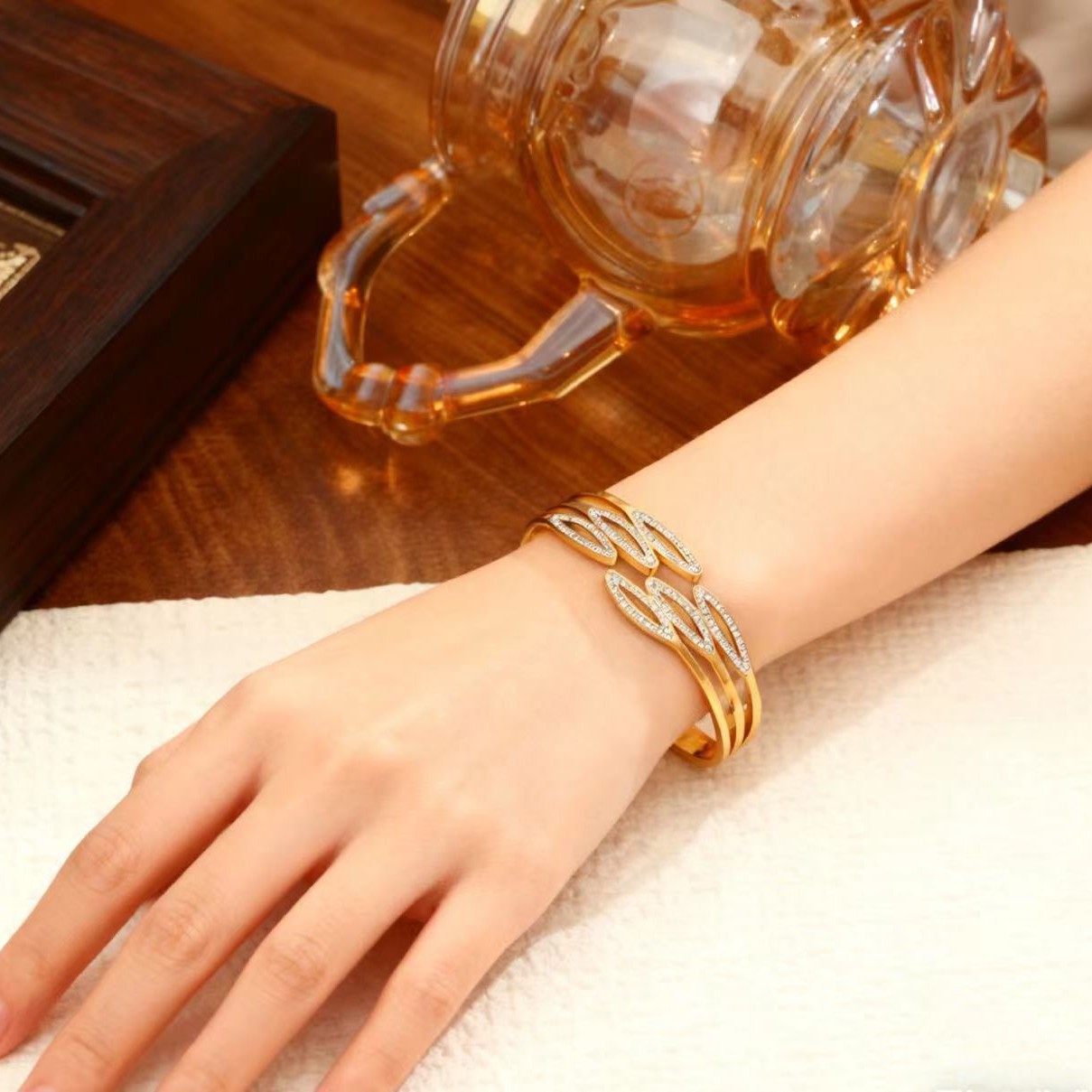 European and American New Style Natural Curve Lines Irregular Wave Pattern Bracelet Non-Fading Stainless Steel Open Bracelet Wholesale