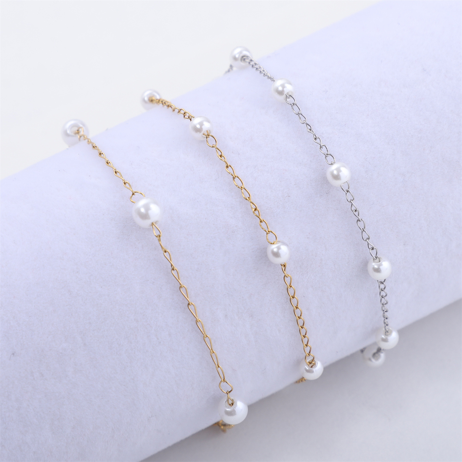 Jinyiyuan stainless steel pearl chain 4mm diameter ABS imitation pearl 18K gold bracelet DIY advanced all-match jewelry