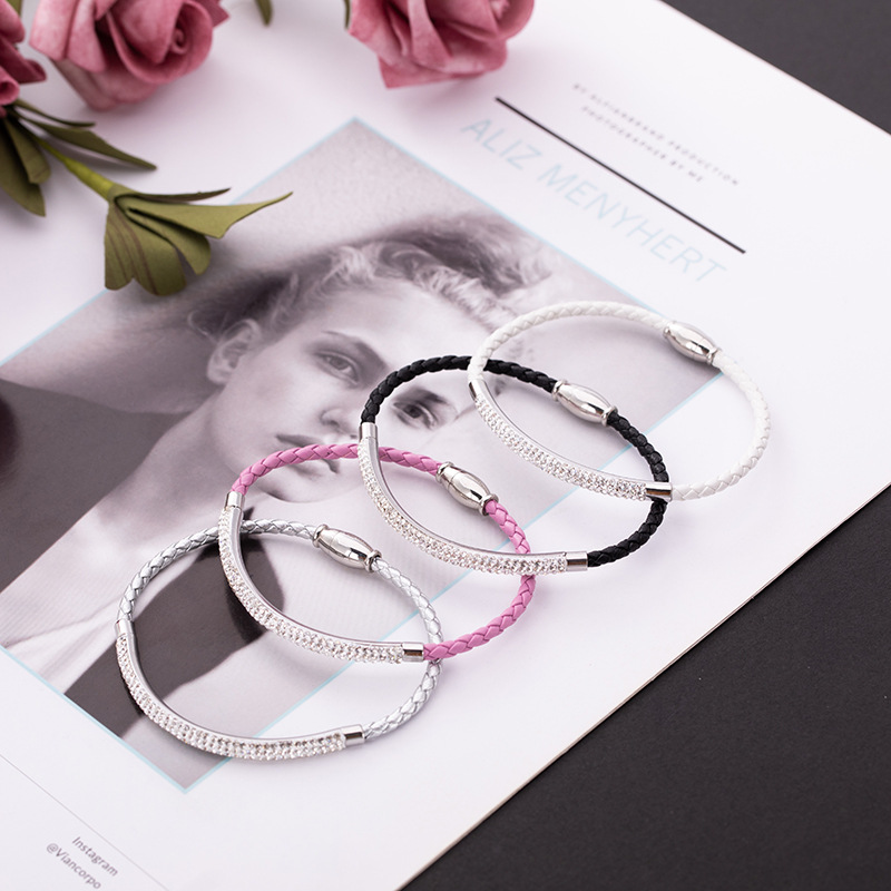 Open Stainless Steel Bracelet for Women, Handmade with Diamonds, Magnetic Clasp Leather Bracelet, Geometric Magnetic Bracelet, Simple Style Titanium Steel