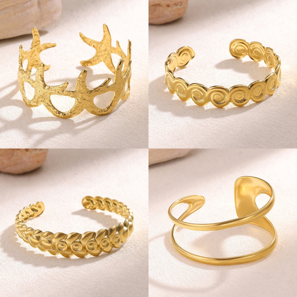 European and American Style Ins Exaggerated High-End Wide Version Starfish Stainless Steel Bracelet Geometric Hollow Leaf Arm Ring Jewelry