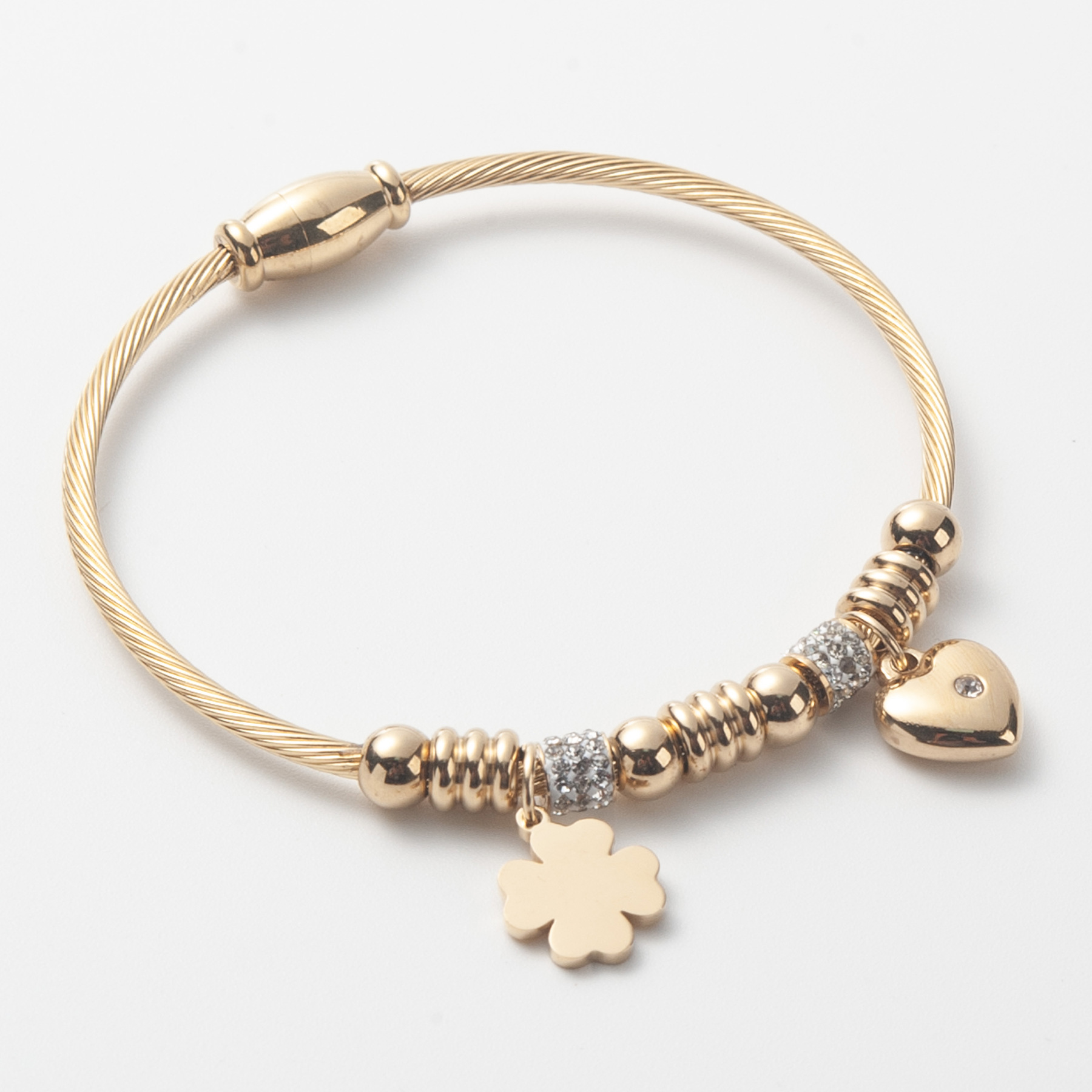 Factory Direct Sales Price Reduction Promotion, Stainless Steel Electroplated Diamond Magnetic Asymmetric Peach Heart Four-Leaf Clover Bracelet 10J