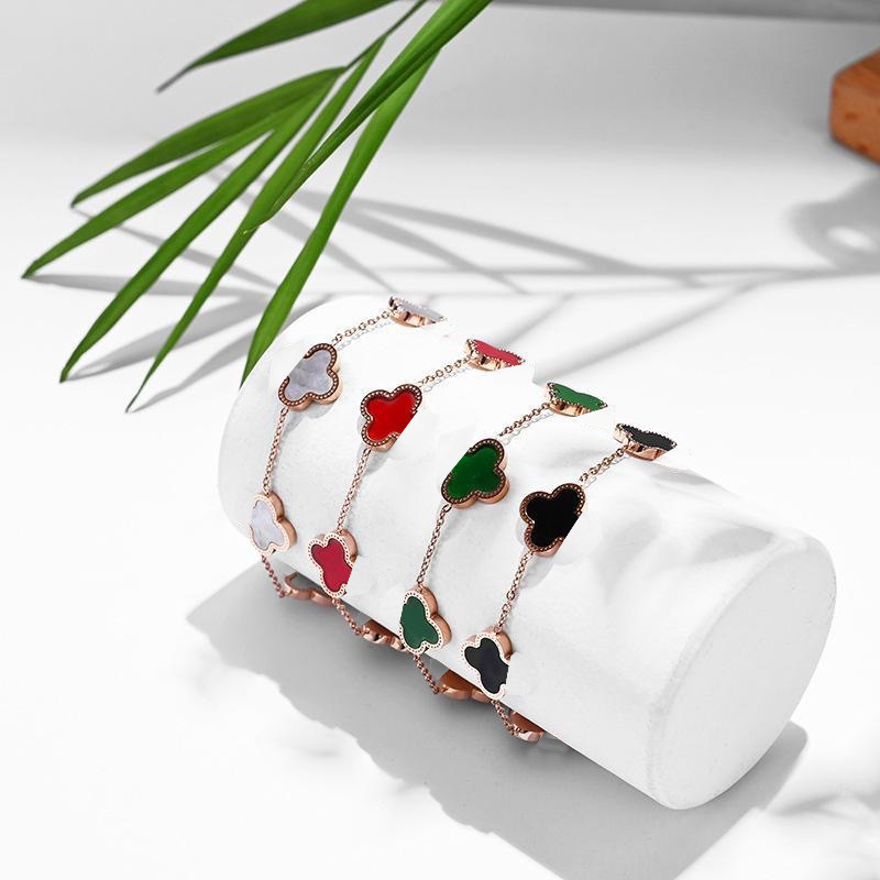 Popular Four-Leaf Clover Bracelet with a High-End Feel, Fashionable and Non-Fading, Single-Sided Titanium Steel Bracelet with Floral Elements, Wholesale