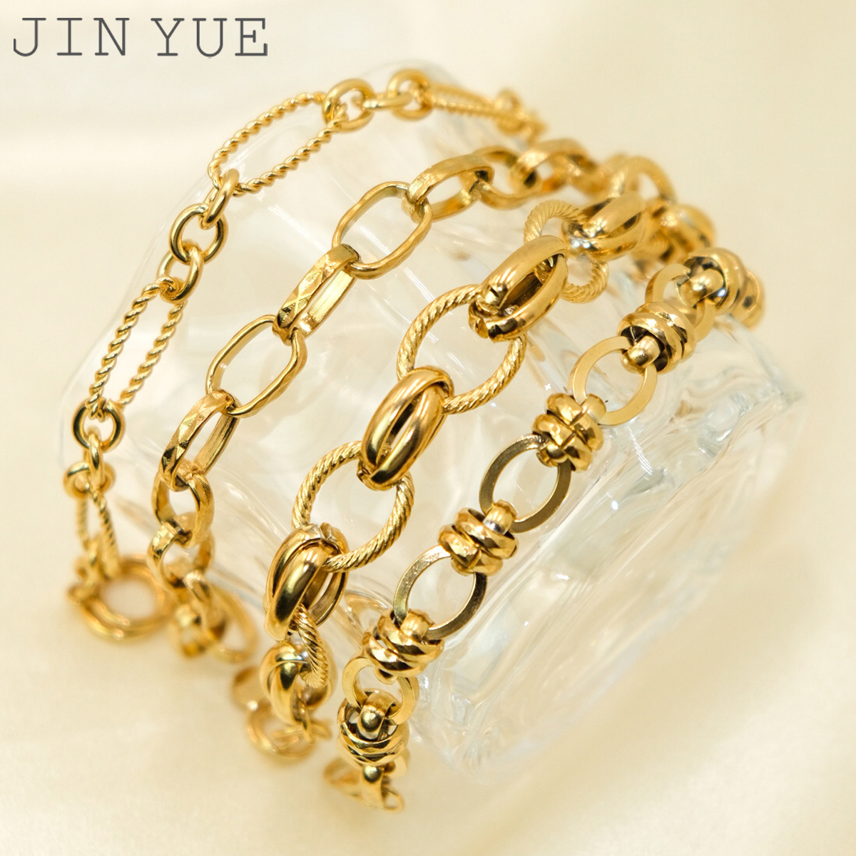 Fashionable and Versatile Oval Thick Chain Bracelet 18K Gold-Plated High-End Stainless Steel Jewelry Lobster Clasp Ot Clasp Accessory
