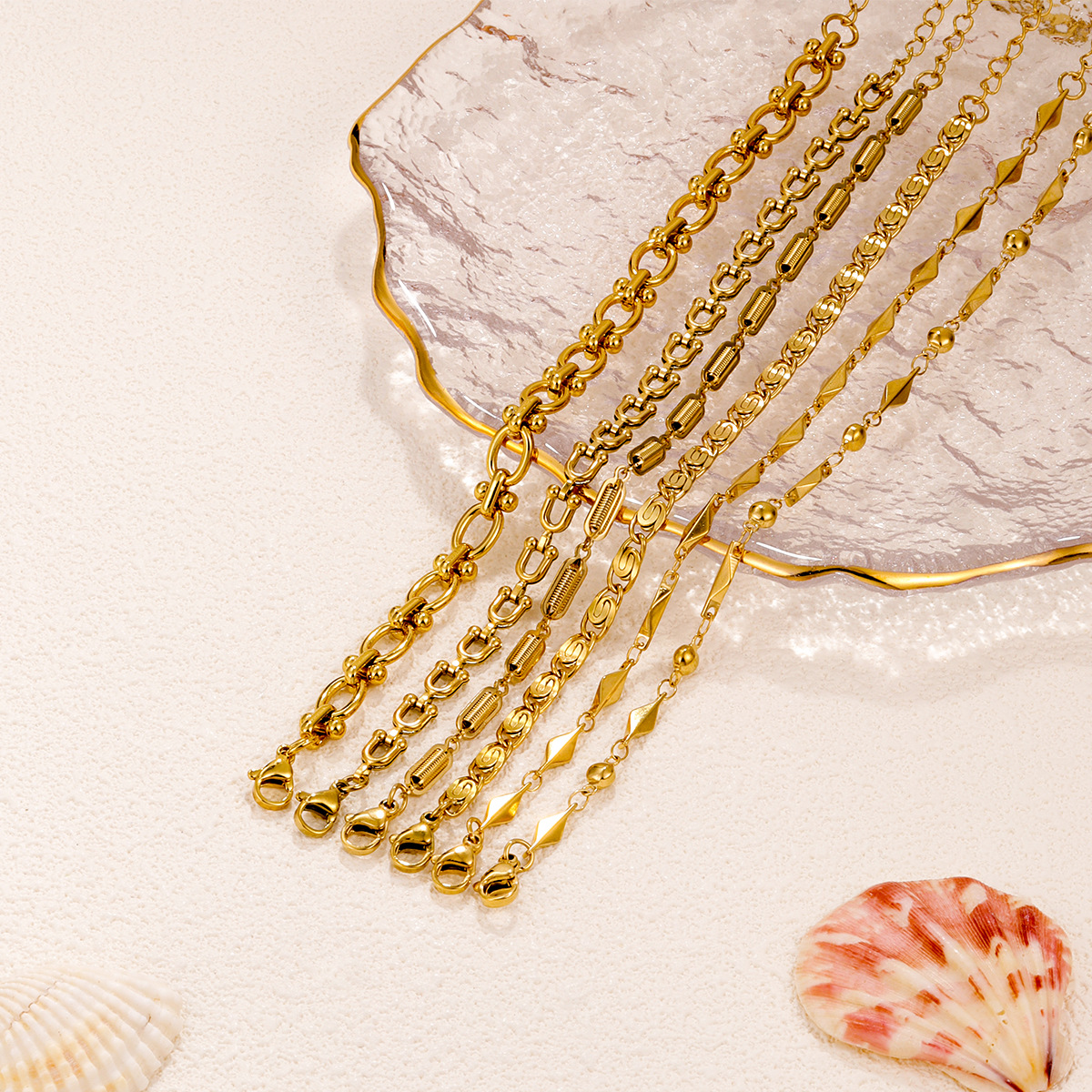 Zhilu European and American Cross-Border Stainless Steel Jewelry Interlocking Geometric Multi-Specification Bracelets Stacked Handmade DIY Plain Chains