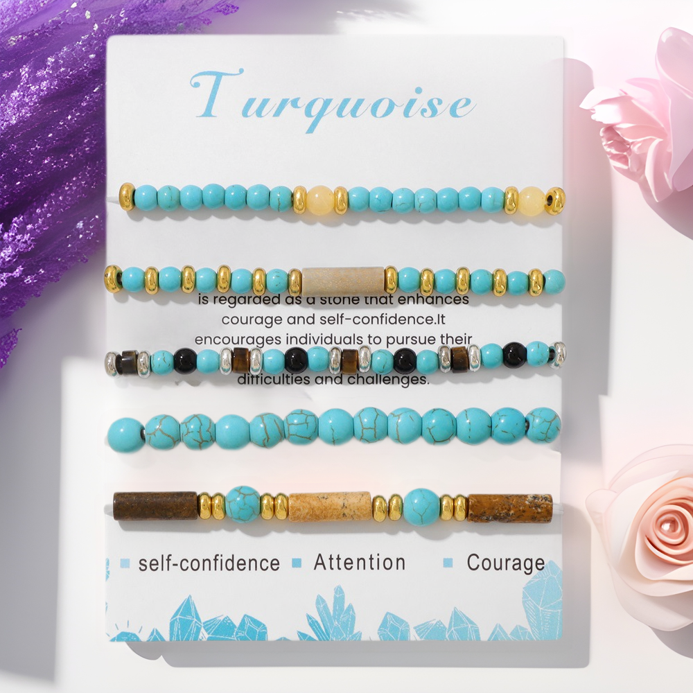 Cross-Border Hot-Selling Natural Stone Bead Bracelet for Men and Women, Tiger's Eye Multi-Layer Bracelet with Stainless Steel Spacers, 5-Piece Set