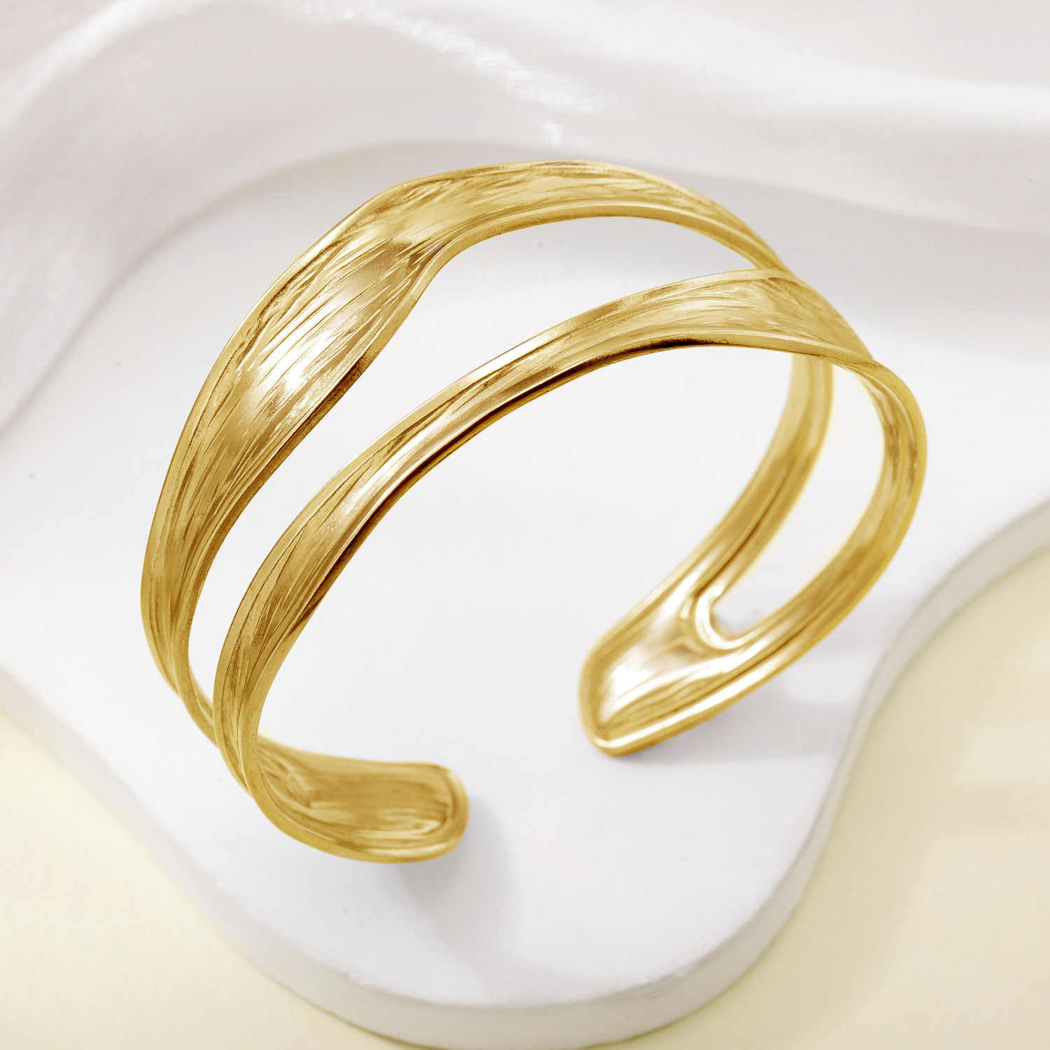 Cross-border Hot Selling Europe and America INS Style Line Double-layer Love Twisted Line Knotted Half-opening Stainless Steel C- shaped All-match Bracelet