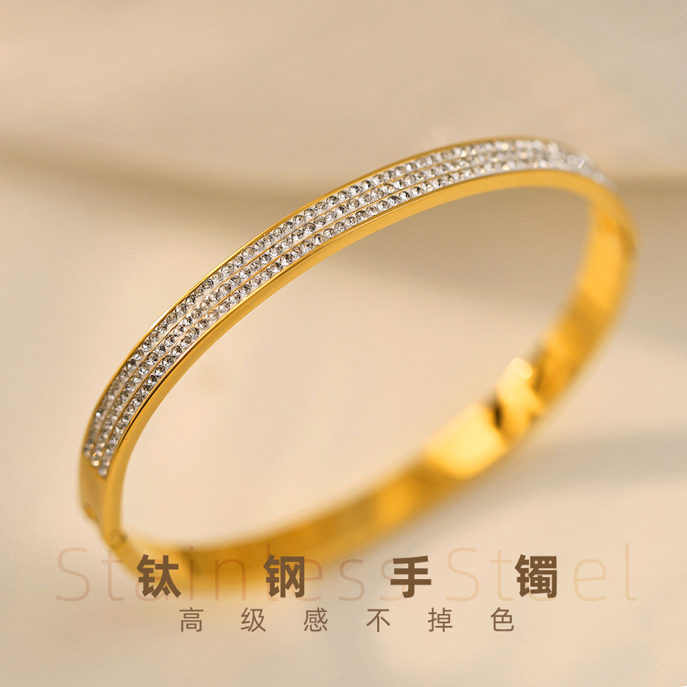 Women's Cross-Border Wholesale High-End Non-Fading Jewelry Women's Electroplated Gold Three-Row Diamond Titanium Steel Bracelet