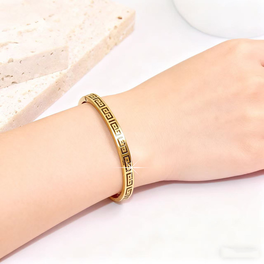 Amazon's Best-Selling Fashionable Accessible Luxury Cut Out Great Wall Pattern Bracelet Ins Trend 18K Real Gold Electroplated Hand Jewelry