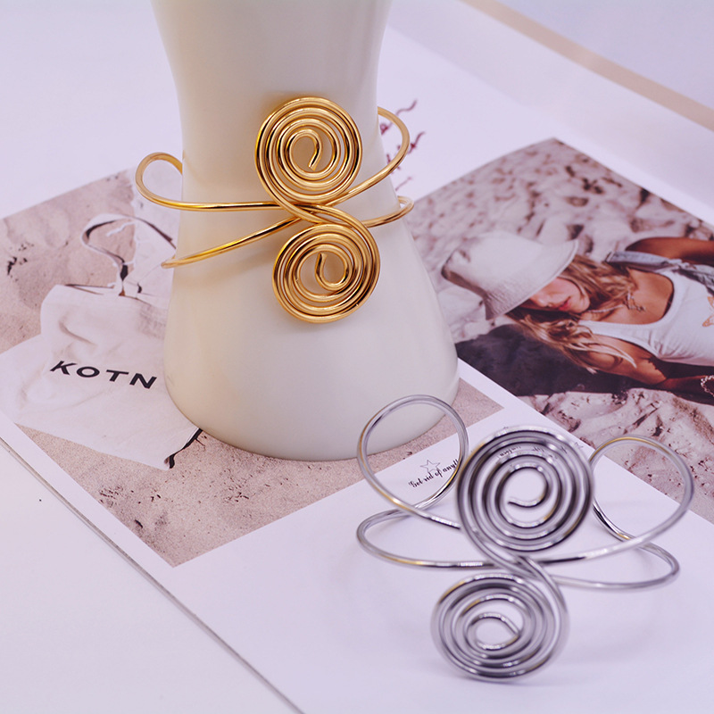 European and American Fashion Export Exaggerated Geometric Personality Jewelry Simple Retro Adjustable Spiral Bracelet Wholesale