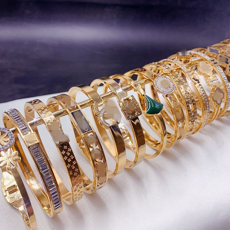 Cross-border titanium steel bracelet women's diamond-inlaid non-fading real gold plating high-level temperament versatile stainless steel jewelry