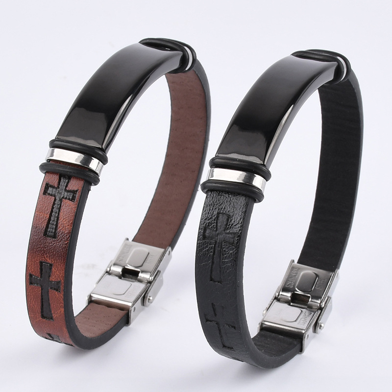 Cross-border European and American style stainless steel geometric water drop cross retro bracelet light luxury niche high-end exquisite wholesale simple