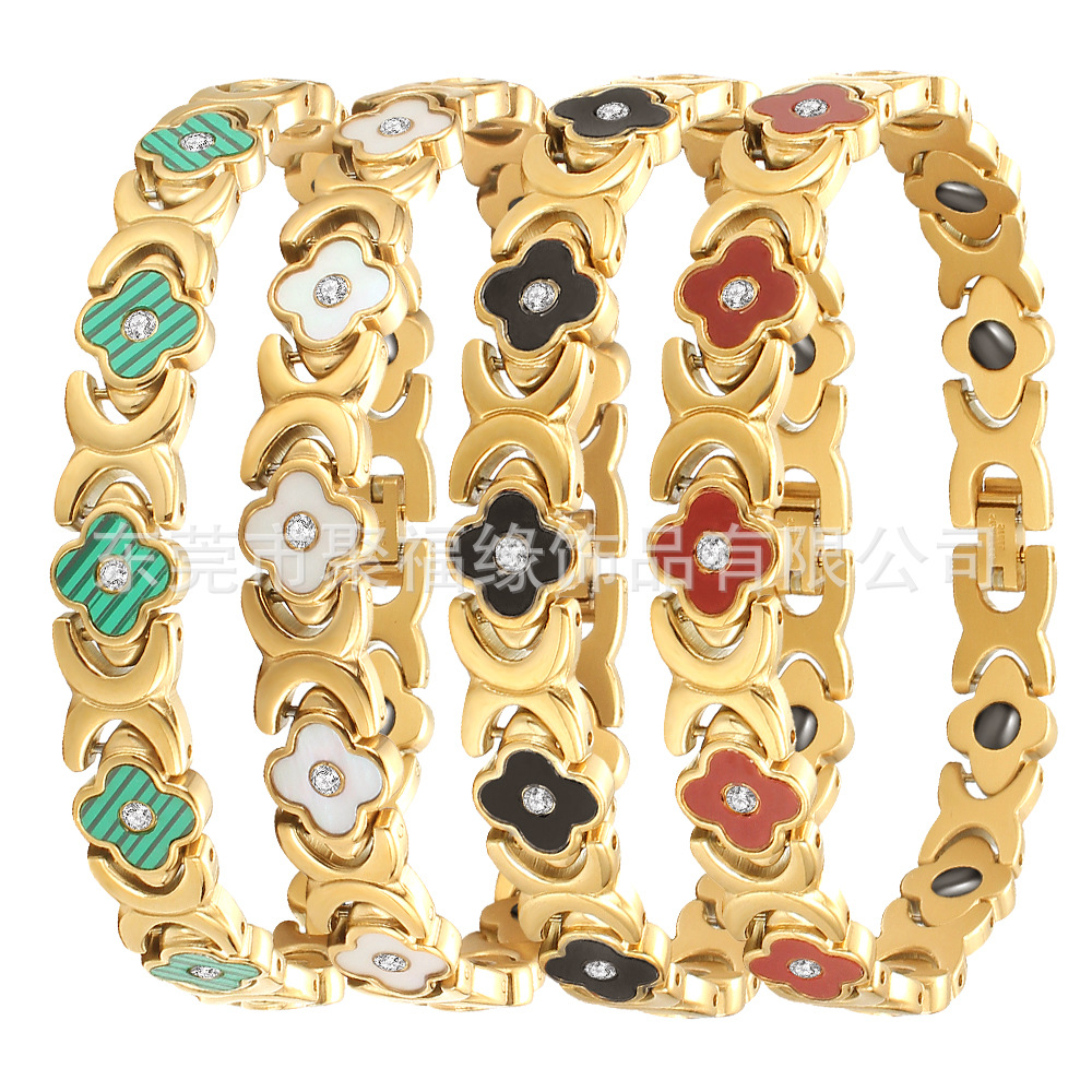 New fashion luxury lucky grass stainless steel shell diamond single row magnet bracelet jewelry in stock wholesale