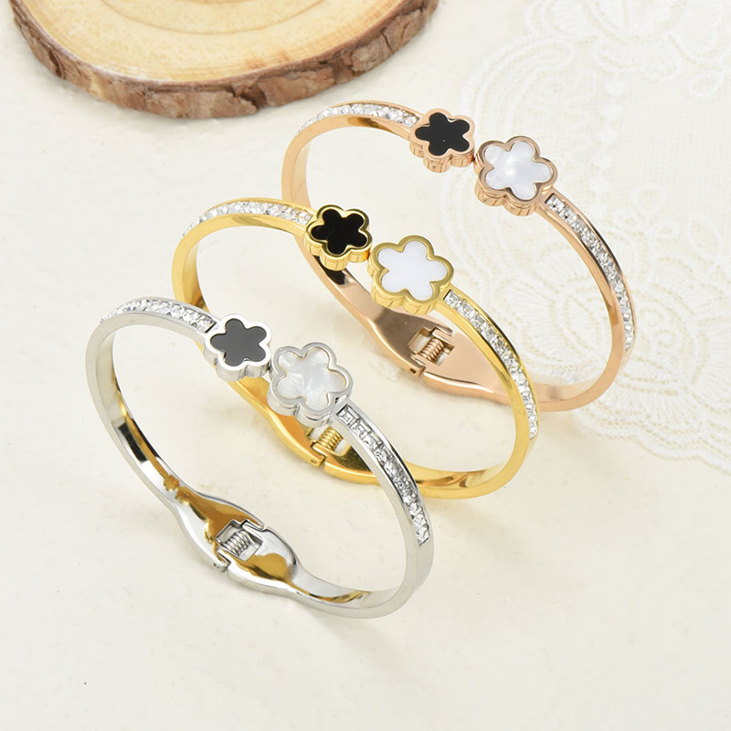 Quick Buy Titanium Bracelet Female Korean Popular Ins Style Shell Five-leaf Flower Open Stainless Steel Spring Bracelet Batch