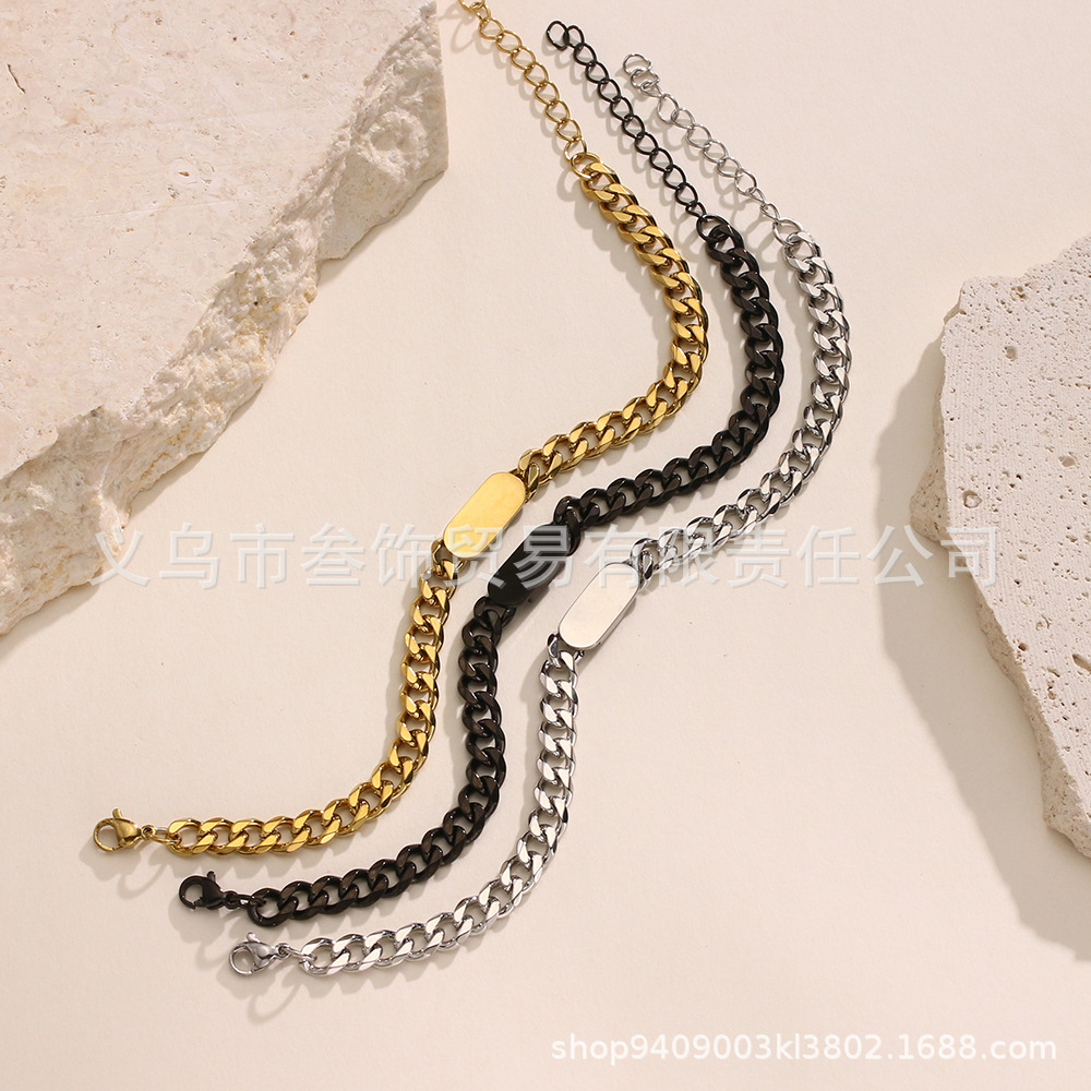 Cross-border explosions hip-hop stainless steel front and back men's bracelet simple domineering punk high sense Cuban bracelet tide
