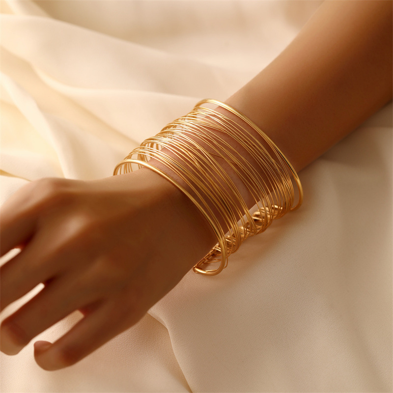 2024 European and American retro exaggerated stainless steel wide bracelet cross-border foreign trade titanium steel plated 18k gold personality open bracelet