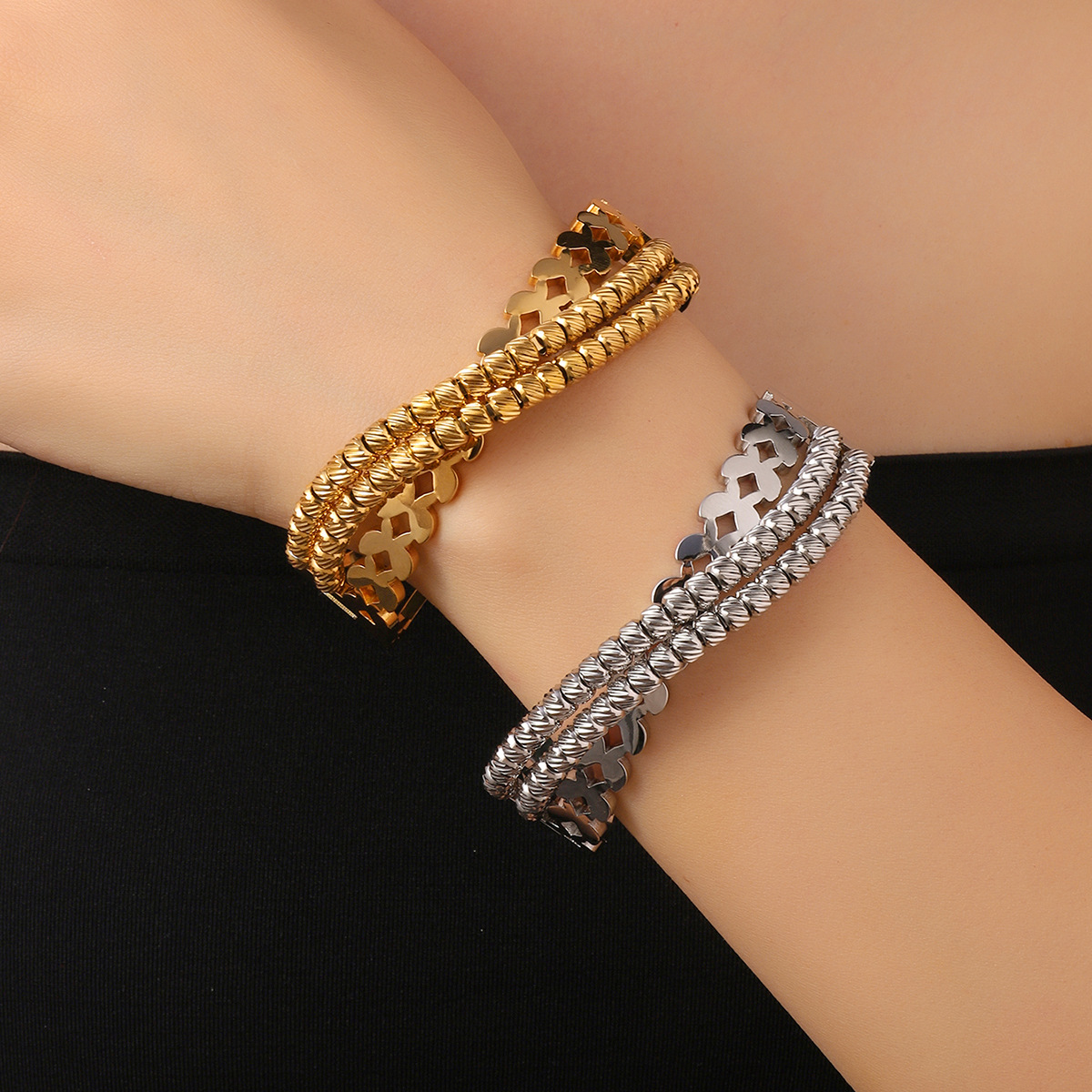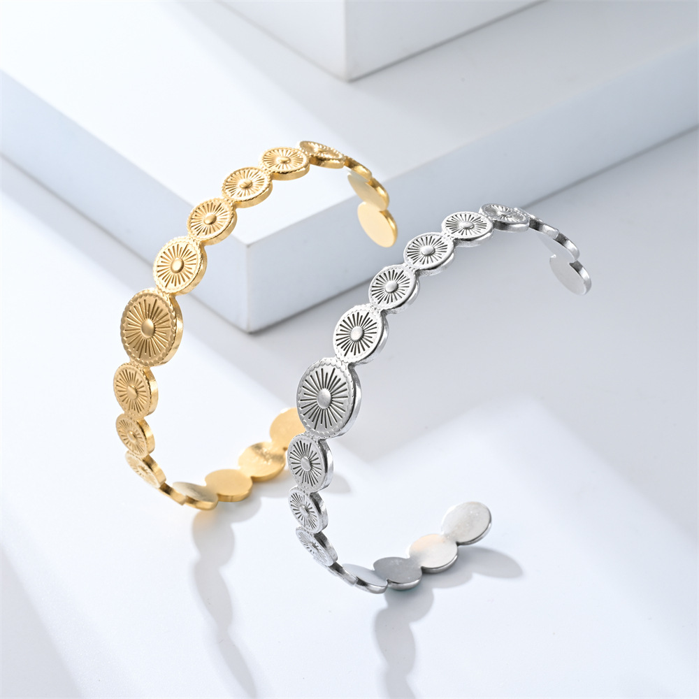European and American Cross-Border Hot-Selling Flower Hydraulic C-Shaped Bracelet Opening Stainless Steel Plated 18K Gold Fashionable Elegant Stylish Creativity