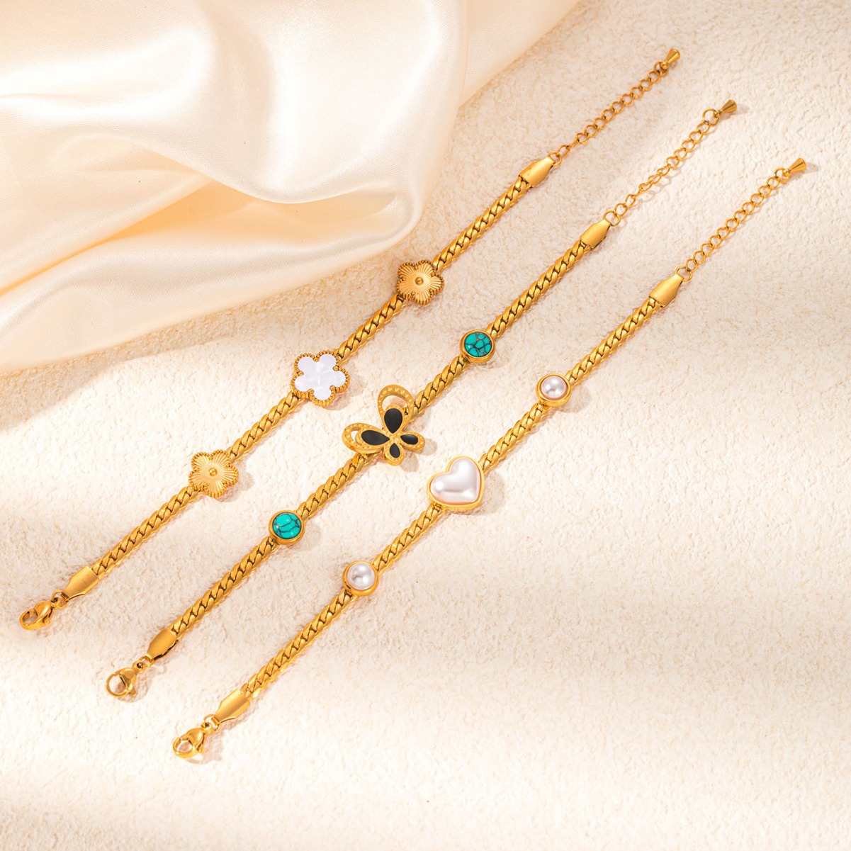 跨境新品四叶草双面五花款手链高版本幸运草网红风时尚不锈钢手链
