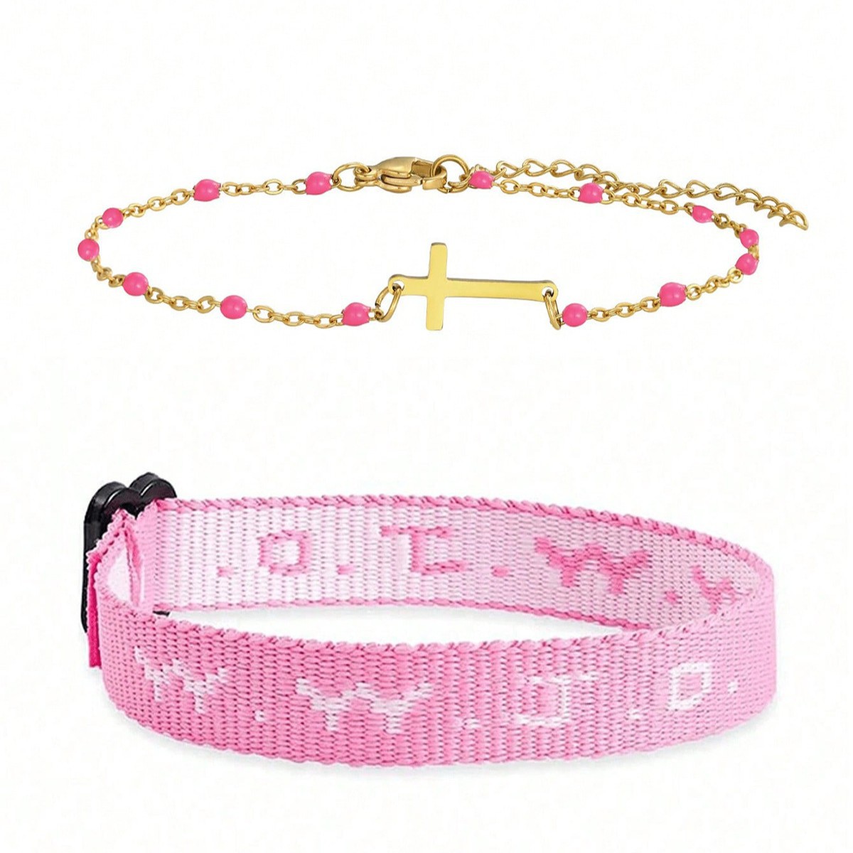 Cross-border New SHEIN/TEMU Explosions WWJD Cross Bracelet suit Simple Women's Bracelet Pink Jewelry