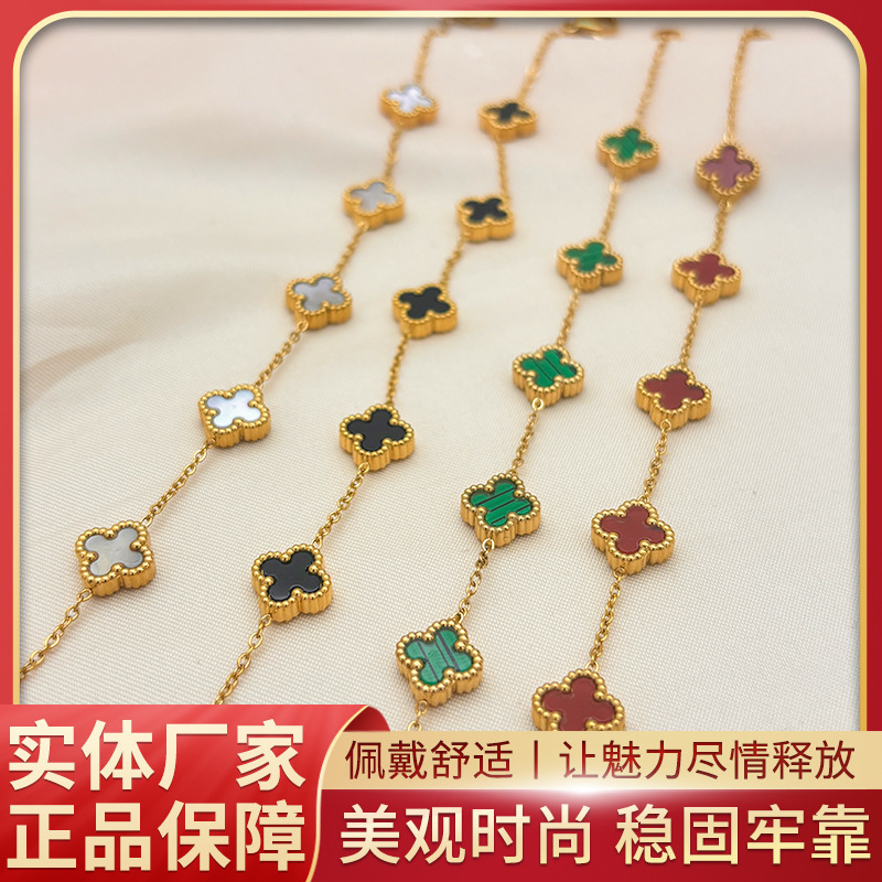 INS wind multi-flower diamond double-layer bracelet cross-border hot-selling stainless steel four-leaf flower bead double-layer bracelet for women