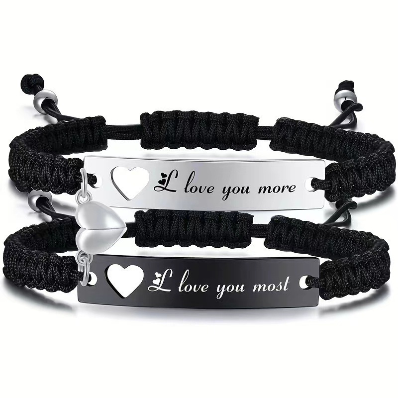 Steel engraved stainless steel woven love magnetic couple bracelet European and American fashion hand woven black rope