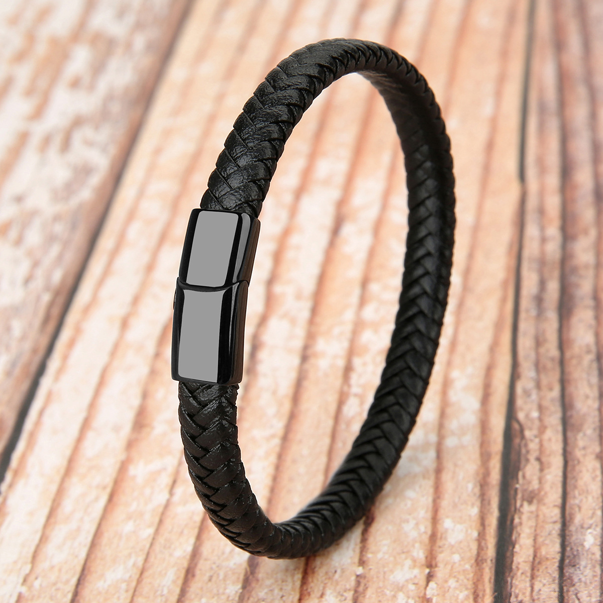 Amazon Retro Super Migration Genuine Leather Braided Men's Leather Rope Bracelet Stainless Steel Magnetic Buckle Men's Bracelet Bracelet Jewelry