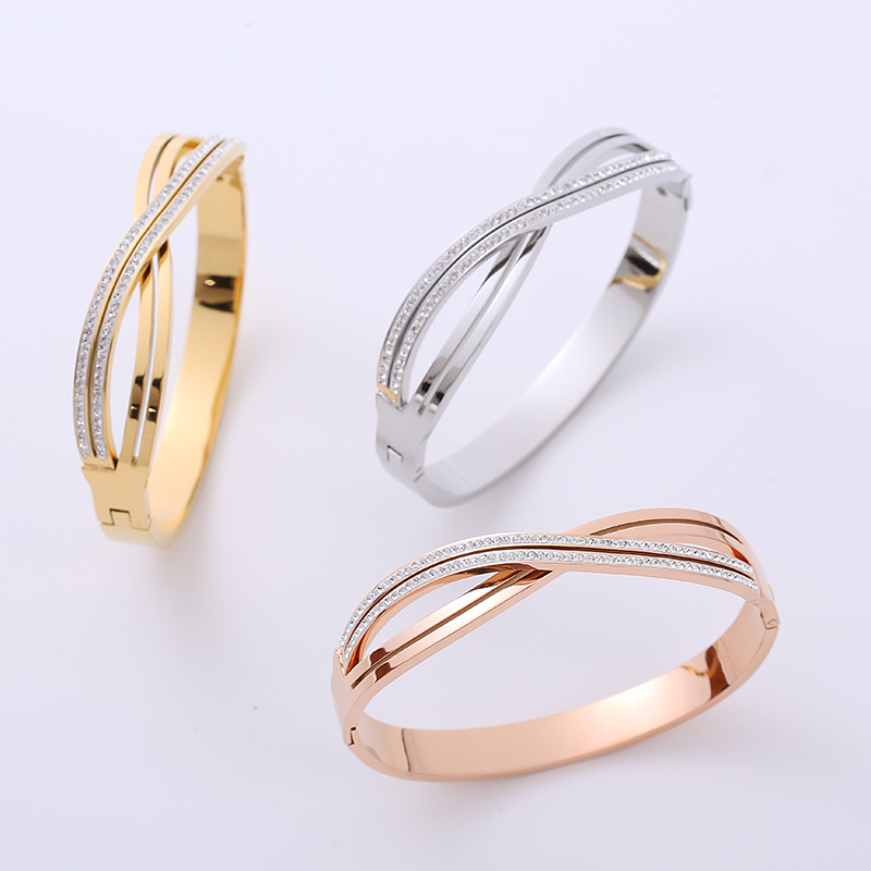 AML foreign trade double-row design cross-shaped inlaid flash drill high-end atmospheric buckle bracelet for cross-border