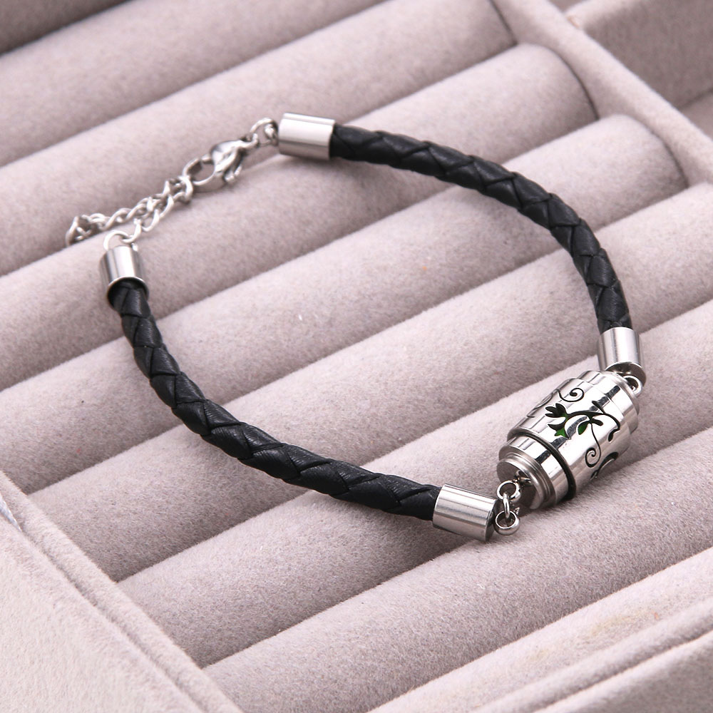 Cross-border European and American Hot Sale Black Leather Aromatherapy Mosquito Repellent Bracelet Stainless Steel Essential Oil Perfume Box Spiral Couple Bracelet