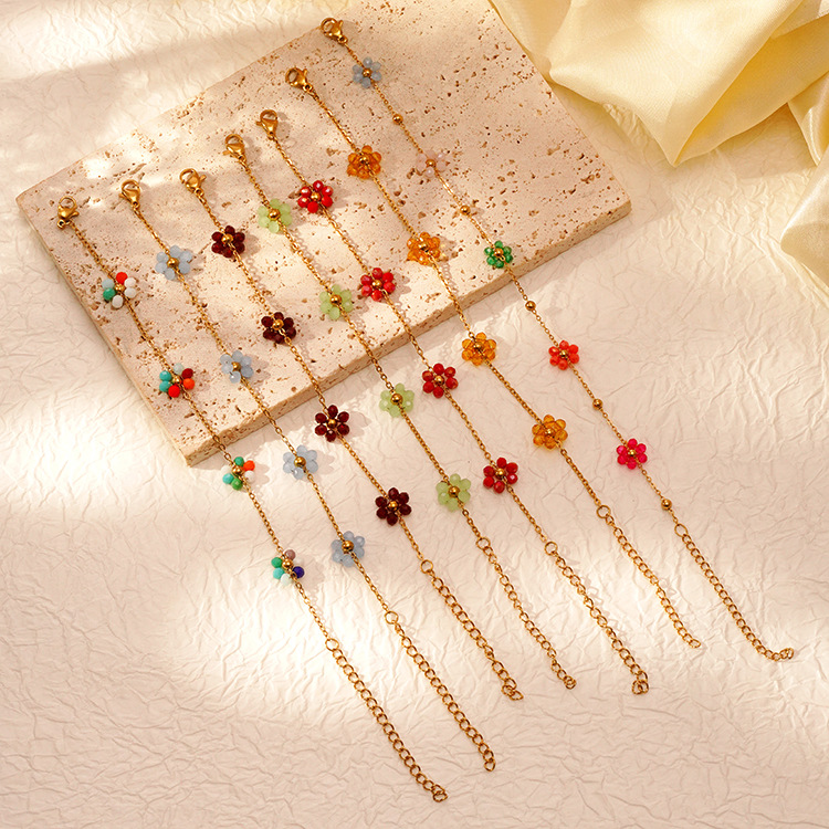 AML Cross Border Bohemian Beaded Bracelet Handmade Girly Flower Glass Beads Stainless Steel Chain Jewelry suit