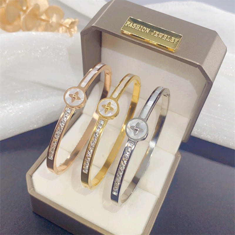 European and American new gold titanium steel bracelet female diamond shell letter stainless steel bracelet non-fading jewelry wholesale