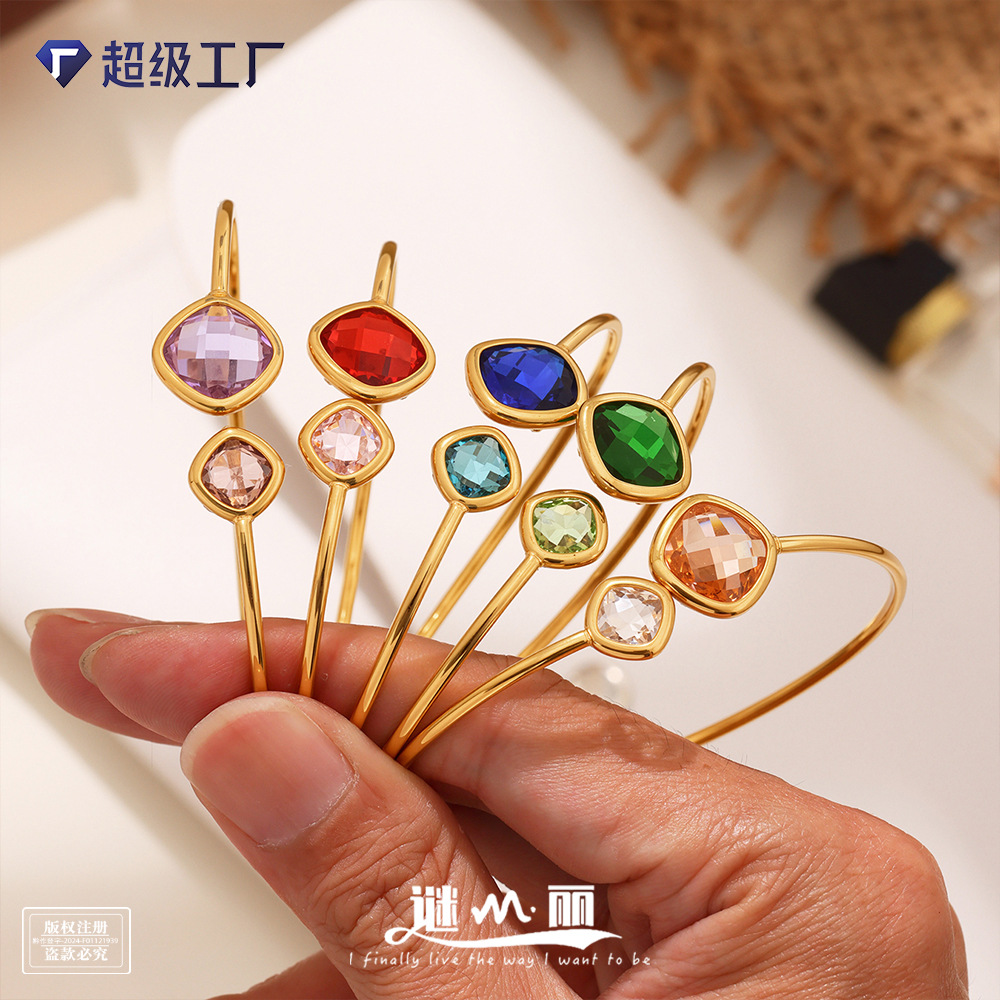 Mili Super Shiny Faceted Czech Glass Stone Open Bracelet Simple Light Luxury Stainless Steel Thin Circle Jewelry Bracelet Wholesale