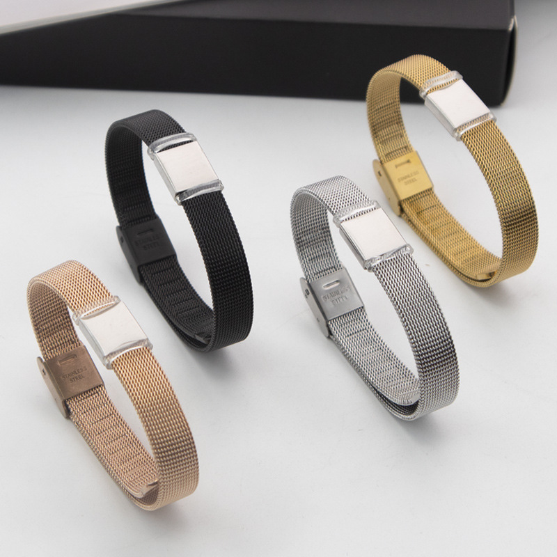 Cross-border foreign trade explosions stainless steel personality DIY custom male and female high sense titanium steel mesh strap bracelet wholesale