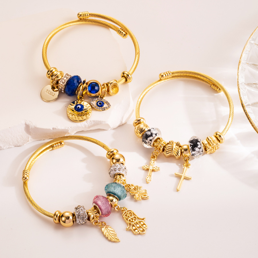 European and American Stainless Steel DIY Pan Family Style Devil's Eye Bracelet Titanium Steel Personalized Cross Bestie Bracelet Bracelet
