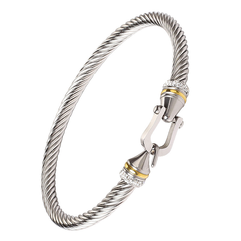 European and American 18K gold Women's Popular silk twisted wire hook bracelet multi-Diamond titanium steel bracelet stainless steel cable bracelet wholesale