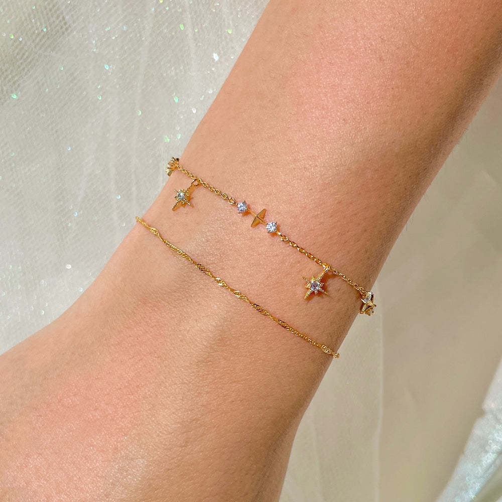 European and American Amazon Eight-Pointed Star Short Tassel Zircon Pendant Bracelet Stainless Steel Foot Bracelet Fashion Trend Women's Jewelry