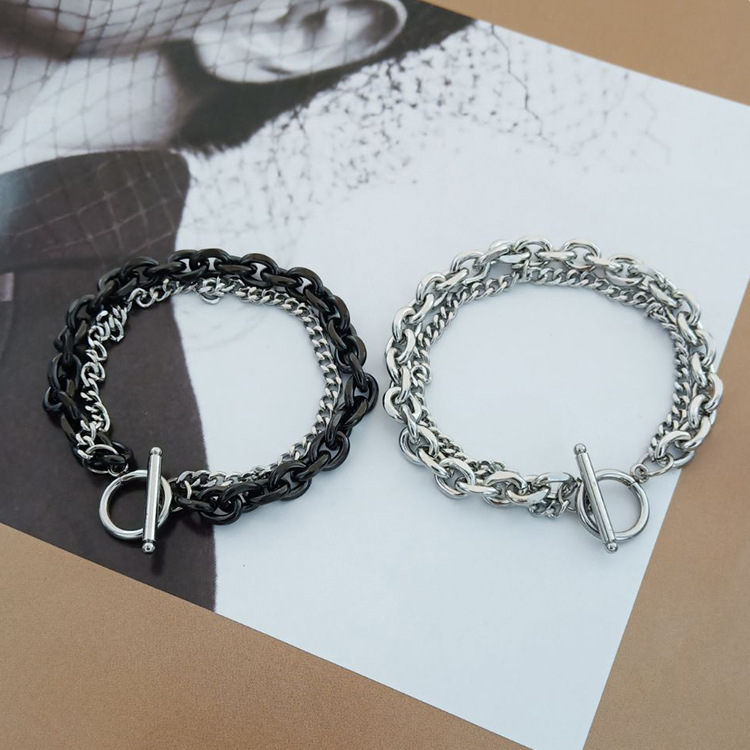 Black and White Double Layer Stacked OT Bracelet Personalized Simple Men's Bracelet Student Retro Internet Celebrity ins Stainless Steel Jewelry