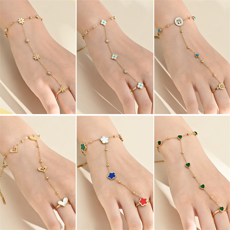 Mystery ins Stainless Steel Plum Blossom Round Diamond Hand Assembled Zircon Bracelet Women's 18k Real Gold Plating Cross-border in stock Supply