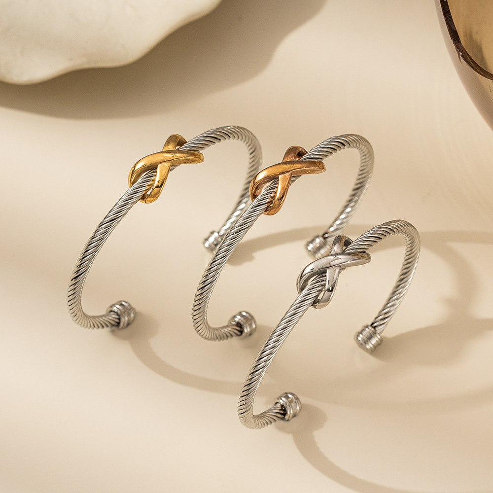 European and American Foreign Trade Cross-Border Titanium Steel Bracelet, Simple Style Stainless Steel Wire Threaded Figure-Eight Two-Tone Bracelet, C-Shaped Bracelet for Women
