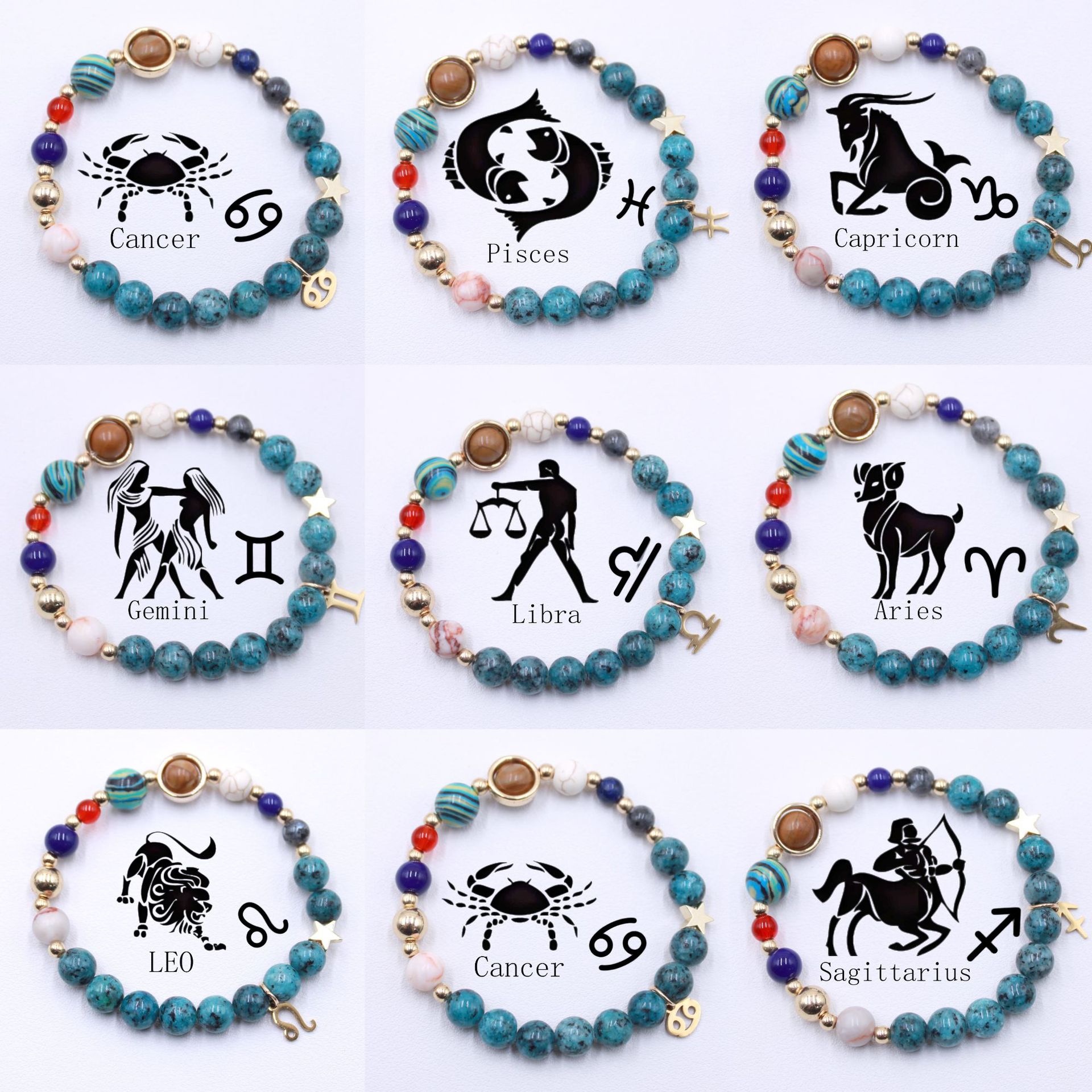 Cross-Border European and American Eight Planets and Twelve Constellations Bracelet Stainless Steel Pendant Natural Stone Granite Beaded Couple Bracelet
