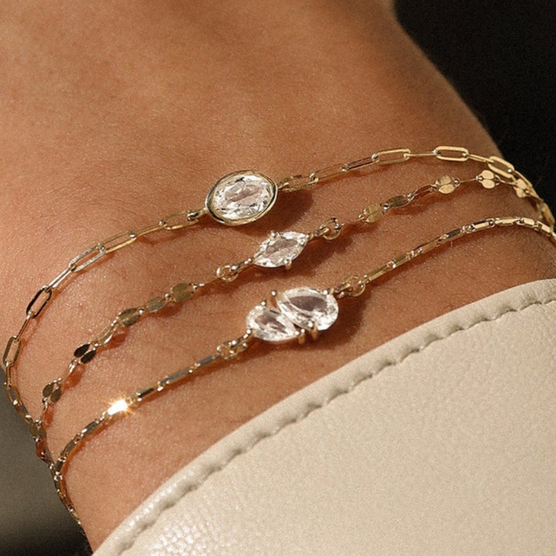 Cross-Border Popular Simple and Light Luxury Diamond Bracelet Stainless Steel Gold Square Chain Daily Commuting Versatile High-End Jewelry