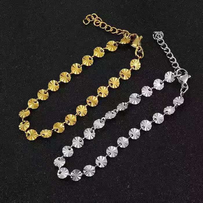 European and American Popular Stainless Steel Embossed Hand Jewelry Sunflower Bracelet Trendy Fashion Personalized Small Disc Bracelet