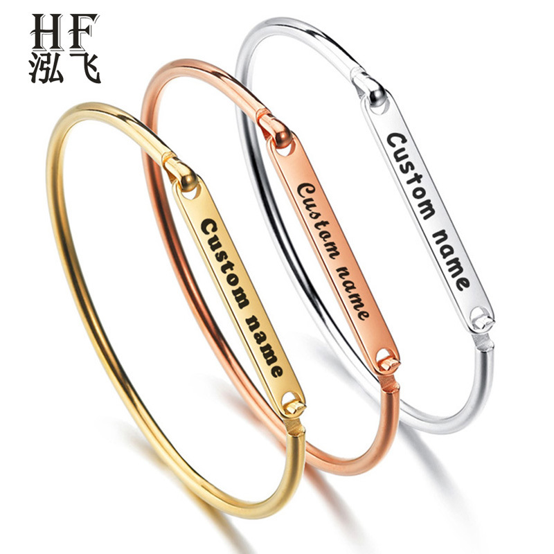 Stainless Steel Vacuum Electroplating Simple Fashion Hand Jewelry Glossy Engravable English Letter Open Bracelet Drop Shipping