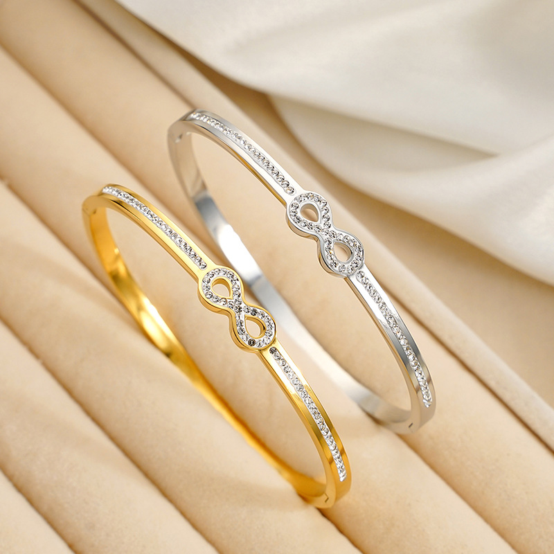Cross-border European and American Unlimited Symbol Kink Bracelet with Diamond Stainless Steel Fashion All-match 8-character Full Diamond Ladies Bracelet