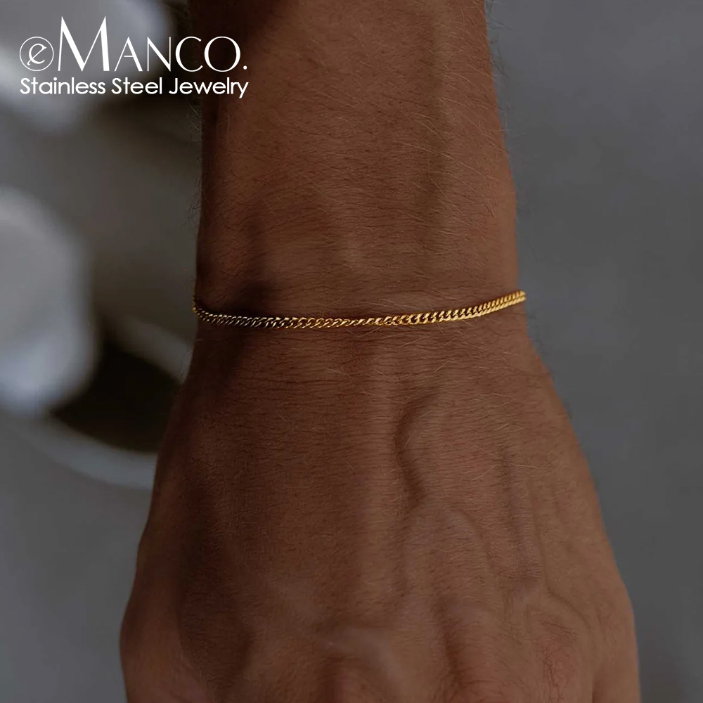 eManco European and American senior niche stainless steel Cuban chain men's bracelet simple temperament adjustable jewelry wholesale