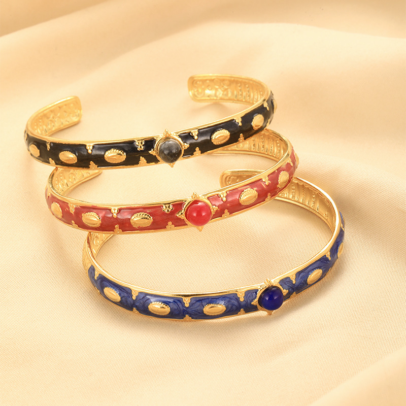 Cross-Border European and American Bohemian Style Personalized Colorful Bracelets Fashionable Personality Open Oil Dripping Stainless Steel Bracelets Wholesale