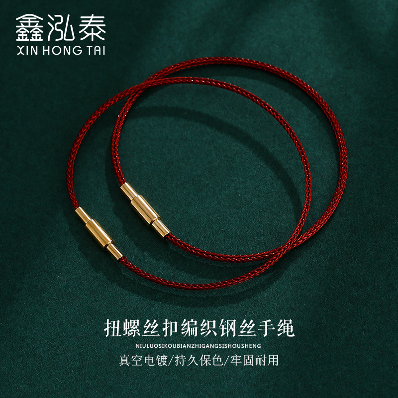Zodiac Year Red Rope Casual Steel Wire Braided Bracelet Wearable 3D Hard Gold Transfer Bead Bracelet Women's Stainless Steel Screw Buckle