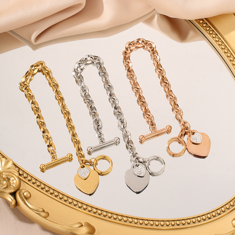 Cross-border zircon bracelet jewelry women's European and American fashion style texture heart-shaped diamond bracelet stainless steel new product