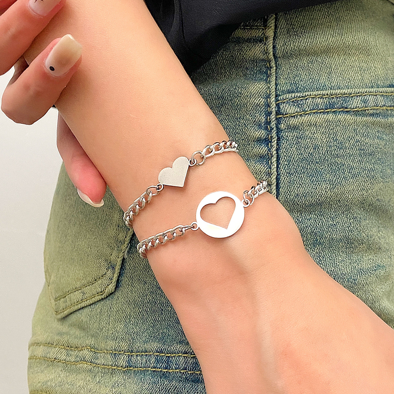 Cross-border stainless steel bracelet women's European and American simple hollow love sun moon chain lovers card bracelet wholesale