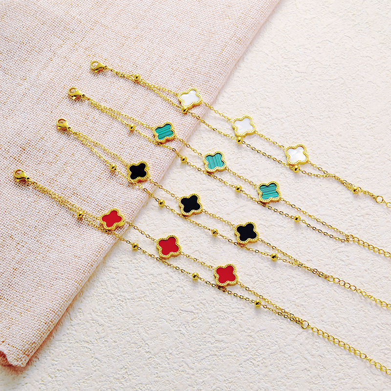 Cross-Border New Titanium Steel Single-Sided Mother-Of-Pearl Four-Leaf Clover Bracelet Light Luxury High-End Women's Popular Bracelet Simple Hand Jewelry